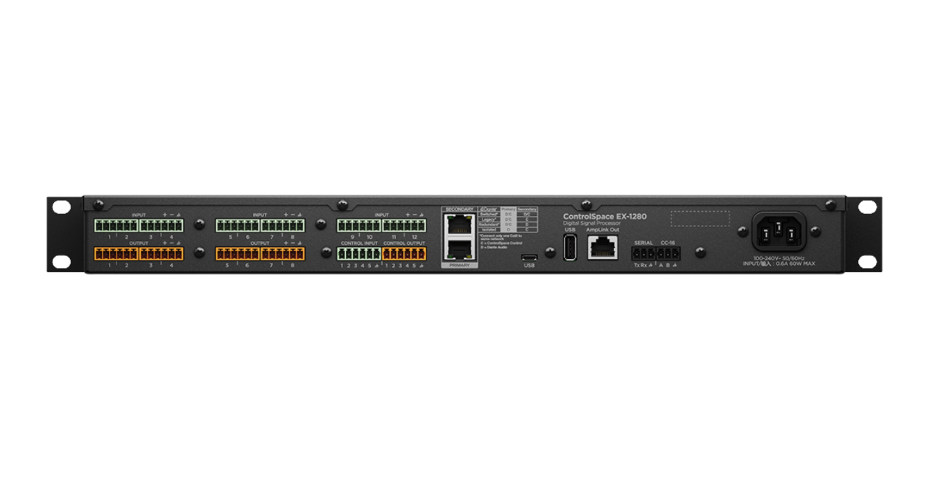 ● Dante 音頻網(wǎng)絡(luò)支持 64 x 64 音頻通道,可連接其他啟用 Dante 的產(chǎn)品(包括 Dante 麥克風(fēng)、功放、混音器和終端)。