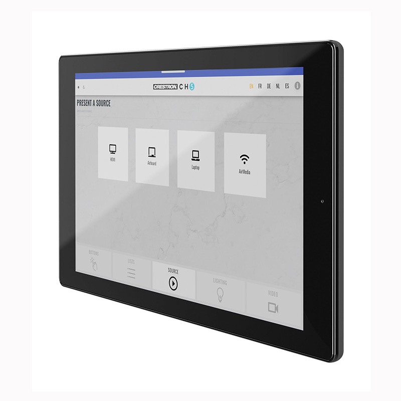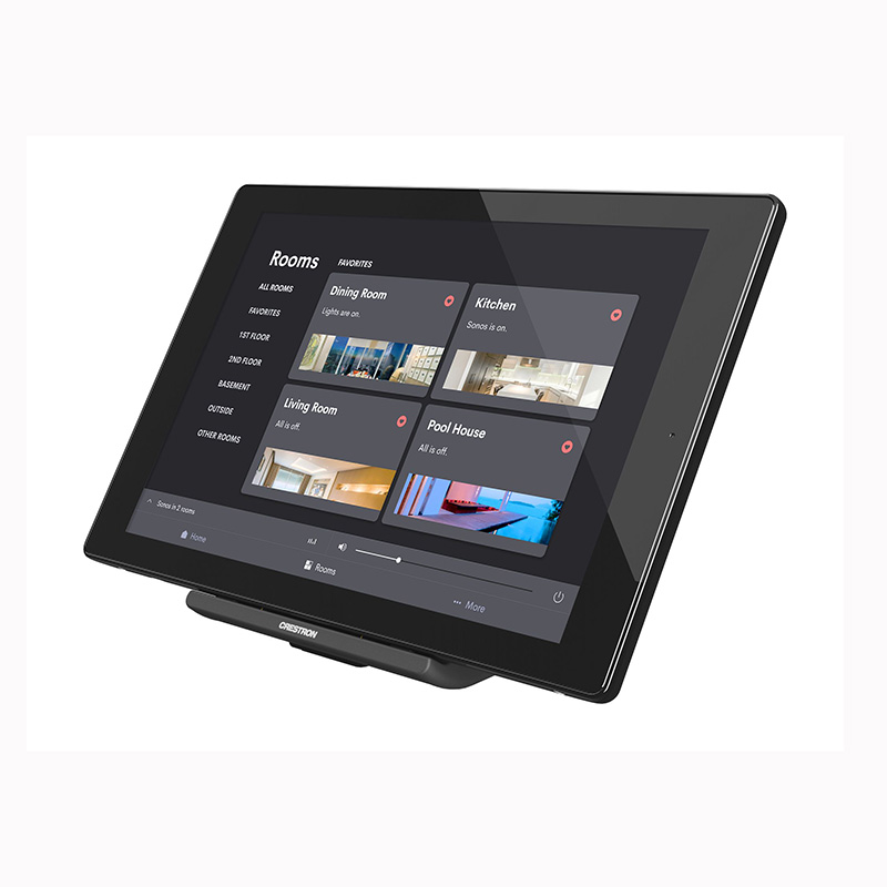 快思聰 TST-1080 無線觸摸屏,能夠實現許多以前無法實現的功能。它不僅適用于商業環境,如會議室,也能完美融入住宅空間,例如家庭影院。屏幕上精心設計了一個通用狀態欄,預裝了多種虛擬按鈕,以執行日常最常用的操作,包括開關設備、調節燈光亮度、快速返回主頁等。該解決方案由Crestron HTML5用戶界面和Crestron Construct?軟件的全面支持,用戶可以輕松定制屏幕,以適應用戶任一功能的需求。